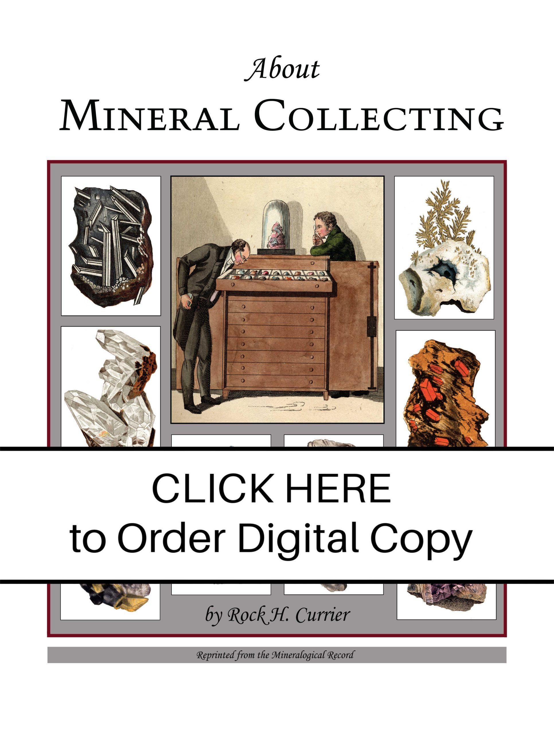 About Mineral Collecting could equally well be entitled An Insider’s Guide to Mineral Collecting, filled with the kind of rare and practical information that every collector needs to fully appreciate, understand and enjoy the uniquely interesting and complex hobby of mineral collecting. It is a collection of personal observations, ruminations, reflections, reminiscences, ramblings, digressions, grumblings, approbations, wisdom and advice gleaned from 50 years of experience collecting and dealing in minerals by Rock Henry Currier, prominent American dealer and collector. He’s been everywhere and seen it all — and is one of the more popular and entertaining writers ever to appear in the pages of the Mineralogical Record, from which these essays have been gathered. Buying the individual magazine issues containing all of these essays would cost $75, but here they are all assembled into one color-illustrated publication for just $20.